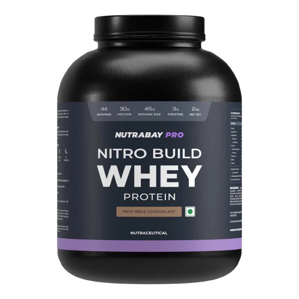 Nutrabay Pro Nitro Build Whey Protein – 2 Kg (4.4 Lb), Rich Milk Chocolate