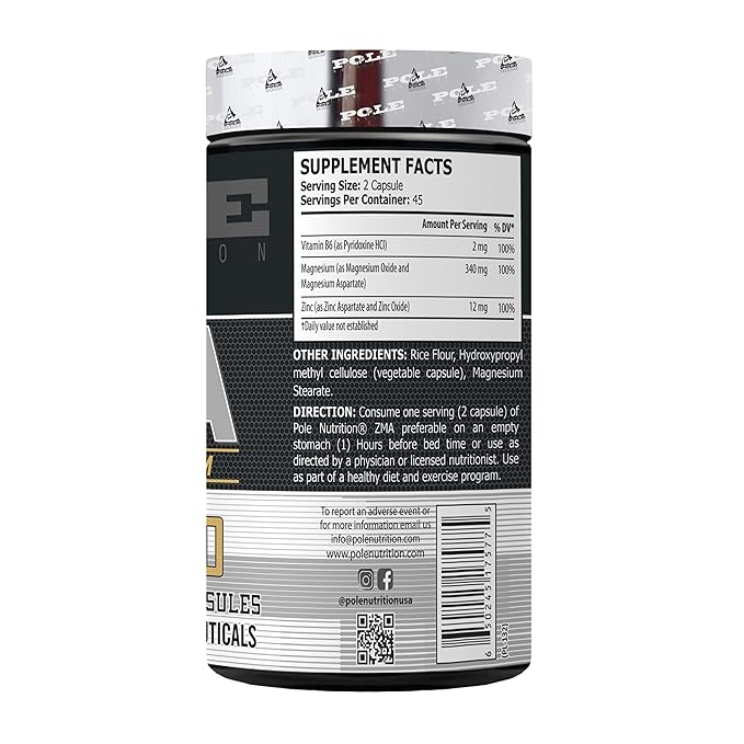 • Advanced Muscle Support: Power up your workouts with Pole Nutrition ZMA, a potent blend of Zinc and Magnesium designed to boost muscle strength and recovery.